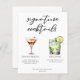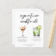 Esta lista de coquetéis de assinaturas chic apresenta uma simples tiopgrafia negra acima de 2 bebidas e seus ingredientes para seu bar de casamento. Um martini espresso e um desenho gin e tônico adicionam um toque legal à sua folha de menus de bar. Preencha com os nomes dos casais e a data para sua recepção.