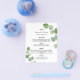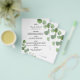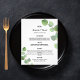Por favor, note que este menu está no papel folheto e muito fino. Os envelopes não estão incluídos. Para menus mais espessos (mesmo design) visite nossa loja. Personalize e adicione seus nomes, data e menu de casamento. Fundo branco, decorado com eucalipto verde, galhos.