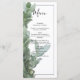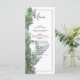 Esta design apresenta folhas e galhos de eucalipto de prata em dólar. O belo verde do eucalipto deixa elogiar a elegante e moderna fronteira negra em torno do texto do casamento. Uma fusão perfeita do moderno e chic com tons verdes prateados de eucalipto. Verde prateado, preto e branco são uma combinação perfeita para um casamento temático de verde rústico. Design de cardápio de casamento único com elementos modernos. Os convites de casamento e outros artigos de papelaria também estão disponíveis.