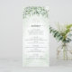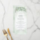 Este elegante menu de casamento botânico apresenta um buquê de folhas de cor aquosa de eucalipto no topo, com um fundo aquoso verde macio e um elegante monograma de na moda em um quadro verde no verso. Localizar produtos correspondentes na coleção.