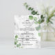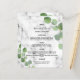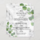 Personalize e adicione seus nomes, data e menu de casamento. Impressão de pedra mármore como fundo, decorado com eucalipto verde, galhos.