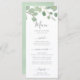 Menu de casamento moderno com folhas de cor d'água eucalipto.