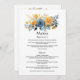 Menu de casamento floral azul e dourado. Ideal para qualquer tema ou casamento de jardim.