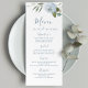 Romântica com aquarela floral em azul empoeirado e verde-sábio, elegante e romântico, cartões de cardápio de excelente para casamento moderno, casamento romântico e casamento de jardim botânico em primavera e verão. Veja todas as peças correspondentes na coleção.