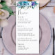 Menu Casamento floral azul roxo, primavera empoeirado E