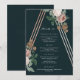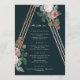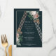 Um menu de jantar elegante projetado por Stacey Meacham com flores de rosa vintage e uma estrutura de triângulo em rosa dourado. Todo o texto além da arte do menu é completamente personalizável, permitindo que você altere a fonte, a cor e/ou a posição de todas as palavras. Use facilmente isso para um evento corporativo também. Coordena-se lindamente com outros itens de nossa coleção de casamento Boho Pyramid de Stacey Meacham disponível em sua loja Zazzle.