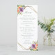 Este elegante pêssego, roxo e verde aquarela floral é brilhante e ousado e complementará qualquer paleta colorida para o dia do seu casamento