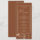 Nosso elegante cardápio de casamento chique e moderno apresenta um design de terracota floral boêmio com flores silvestres em aquarela rústica e detalhes em dourado. Este cardápio deslumbrante combina perfeitamente o estilo contemporâneo com o charme boêmio, oferecendo um toque sofisticado que complementa lindamente a estética do seu dia especial. Oferta especial até 15/01/2025: Compre este produto, envie um e-mail para bpkolman@gmail.com com sua próxima escolha e obtenha um desconto exclusivo!