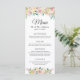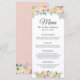 Cartão de Menu de Casamento Floral Chic Blush Pastel com Aquarelas.