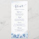 Menu Casamento floral com cor azul-d'água da caligrafia