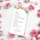 Eleve sua recepção de casamento com nosso Menu Casamento Floral de Blush de Cores d'Água. Este elegante cartão de menu apresenta um design floral de cor aquosa e macia em belos tons de blush, complementando perfeitamente um tema romântico e sofisticado de casamento. Mostre suas opções de refeições cuidadosamente curadas em estilo, fazer que seus hóspedes se sintam bem-vindos e indulgentes. Ideal para casamentos florais, jardins ou de primavera, este menu irá melhorar a definição de mesa com charme de eterno.
