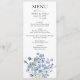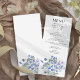 Menu de casamento de flor selvagem com flores silvestres de cor aquosa. Este doce design floral tem flores silvestres femininas e delicadas numa paleta romântica e macia de lilás, travesseiro, púrpura pálida, lavanda e azul. Perfeito para primavera e casamento de verão. Para coordenar convites, artigos de papelaria, cartazes e decoração do dia do evento, por favor navegue na minha Coleção de Casamentos de Lilac e Periwinkle Wildflower ou envie-me uma mensagem para adicionar quaisquer itens adicionais de que necessite.