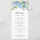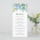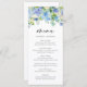 Adicione um sotaque floral elegante à sua colchete de eventos com este cartão de menu floral personalizável. Apresenta terra floral de cor-de-água, com hífenes azuis e roxas, rosas de marfim e verde. Personalize este cartão de menu floral de cor d'água adicionando seus próprios detalhes. Esta placa de menu hydrangea é perfeita para primavera e casamentos no inverno, chás de panela, chás de fraldas e muito mais.