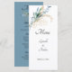Este Cartão de Menu de Casamento de Aquarela de Verão foi projetado com ramificações de eucalipto suaves em tons de azul-esverdeado com realces de ouro. O texto da frente inclui: os primeiros nomes e a data de casamento da noiva e do noivo. O texto inverso inclui: Menu Recepção de casamento - Seleção de Apetista, Entre e Deserto. Para personalizar, basta inserir os detalhes do menu no nosso modelo, substituindo o texto de exemplo. Certifique-se de ver toda a Coleção de Casamentos de Cores Aquáticas de Verão para cartões correspondentes e Papel de Carta de Recepção.