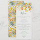 Este design apresenta flores em aquarela brilhantes em tons vibrantes de amarelo, laranja, verde e azul-teal. Perfeito para casamentos de primavera e verão.