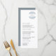 Um design moderno em azul empoeirado. Este cardápio de casamento tem espaço para quatro cursos. Seja breve, mas use até três linhas para cada curso. O motivo floral no canto superior direito corresponde ao design da nossa poeirenta coleção floral azul. Se você amar este menu, procure mais itens correspondentes e coordenados na coleção. Um design simples e na moda com tipografia contemporânea.