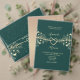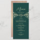 Cartão de noiva esmeralda verde e dourado com detalhes florais delicados e um design de corda romântico. Perfeito para recepções formais, queda ou casamentos no inverno, e jantadas sofisticadas de banquete. Personalize com seus nomes, data e seleções de menu personalizadas para criar um toque exclusivo para seu dia especial. Coordena-se perfeitamente com convites para casamento, placas e artigos de papelaria emerald e ouro da mesma coleção.