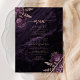 Este elegante menu de casamento apresenta buquês florais roxos disparados com verde folha de ouro rosa em dois cantos, numa imagem de fundo de agate cor d'água roxa. O texto personalizável combina fontes de serif e escrita manual cor-de-rosa rosa. O verso apresenta um design verde roxo e rosa dourado correspondente.