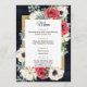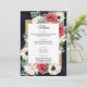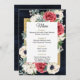 O Marinho Russo Barn Wood Elegante Red e Dourado Menu de Casamento Branco Floral. Design apresenta Flores Vermelhas, Anêmonas e Flores Brancas com Quadro Dourado Russo Elegante Verde com Retorno Adormecido