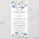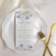 Menu de Casamento Floral Elegante Azul de Aquarela