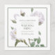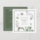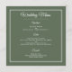 Cartaz do Menu de Casamento Floral Elegante de Rosas Brancas para sua Recepção. A frente é desenhada com Brilhos de Rosa Brancos com sotaques florais verdes com o texto: Os primeiros nomes da noiva e do noivo, o menu de casamento e a data de casamento. O texto do verso inclui: o menu de casamento completo em um fundo verde com fronteira branca. Para personalizar, basta usar nossa modelo fácil para substituir o texto de amostra por seus detalhes.