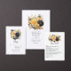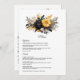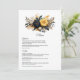 Convite de casamento floral preto e dourado com tipografia elegante personalizável para suas especificidades de evento.