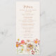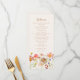 Traga um toque de beleza selvagem e outonal para a sua mesa de casamento com este Menu de Casamento Boho Fall Wildflower Meadow. Inspirado nas cores e texturas de um prado ensolarado no final do outono, este design apresenta flores de aquarela pintadas à mão em tons terrosos de laranja queimada, terracota, amarelo dourado, ameixa, coral, pêssego e rosa suave. O layout combina uma escrita fluida e elegante com tipografia moderna e relaxada, criando um equilíbrio sonhador entre a natureza e a sofisticação elegante. Perfeito para casamentos de outono com um clima rústico boêmio, de jardim ou rústico, este menu adiciona um toque pessoal e artístico à sua recepção. Criado com arte original por Catherine Sweetman, é totalmente personalizável para refletir seu estilo e menu únicos, tornando-o uma bela lembr