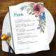 Elevem sua experiência de jantar de casamento com este simples menu de casamento floral azul e cor-de-água rosa. Apresentando uma delicada mistura de florais cor-de-rosa e azuis, este elegante cartão de menu adiciona um toque romântico às suas mesas de recepção. O layout limpo e moderno proporciona amplo espaço para listar aperitivos, entradas, sobremesas e bebidas, garantindo que seus hóspedes saibam o que está sendo servido. Perfeito para casamentos clássicos, rústicos, de vassoura e de jardim, este menu de casamento floral complementa uma variedade de temas, desde comemorações de primavera e verão até recepções elegantes à noite.