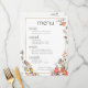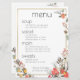 Cores d'água coloridas elegantes flores e carateres dourados menu de casamento personalizável modelo.