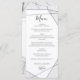 Este design apresenta padrões elegantes de mármore e geometria. Os padrões geométricos sobrepõem as linhas naturais simples do mármore. A combinação de cinzas, preto e branco cria um estilo sofisticado, moderno e chic. Design de cardápio de casamento elegante com elementos modernos. A configuração moderna da tipografia lhe dá um estilo distinto. Os convites de casamento e outros artigos de papelaria também estão disponíveis.