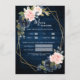 Cartão de seleção de cardápios geométricos florais azuis-marinhos-escuros, com buquê elegante de azul-marinho, azul-real, branco, rosa e verde-sábio, folhas de eucalipto e quadro geométrico elegante de brilho. Entre em contato comigo para obter ajuda sobre a personalização ou se você precisar de outro produto com este design.