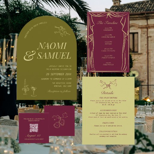 Menu Casamento Ilustrado Chartreuse Olive Green