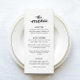 Cartões de menu simples e elegantes são um clássico que fornecem um aspecto limpo e sofisticado que complementará qualquer configuração de mesa. Mantenha-o chique e doce com estes cartões de menu simples e elegantes que nunca sairão do estilo. Para obter mais itens coordenadores visite nossa Coleção de Casamentos Elegantes Modernos