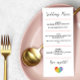 Menu de casamento do orgulho d'água para um casamento gay ou lésbico com um coração enorme cheio de textura aquosa em cores arco-íris. Cardápio de casamento de orgulho e tipografia moderna.