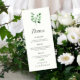 Aumente sua recepção de casamento com nosso Menu de Casamento Minimalista Eucalyptus Greenery. Este cartão de menu elegantemente projetado apresenta um layout simples, mas refinado, enquadrado com delicadas folhas de cor d'água eucalipto que adicionam um toque natural de verde à sua configuração de mesa. Perfeito para um casamento minimalista ou com tema de jardim, as linhas limpas do cardápio e a tipografia moderna criam uma estética sofisticada que complementa a vossa decoração geral. Os sotaques sutis de eucalipto trazem um senso de frescura e serenidade para sua recepção, enquanto o design espaçoso permite uma apresentação clara de seus pratos cuidadosamente selecionados. Personalize este menu com os cursos escolhidos para oferecer aos seus convidados uma experiência de jantar bela e informativa. Ideal para casais que apreciam elegância e elementos botânicos subestimados, nosso Menu de Casamento Minimalista Eucalyptus Greenery é a adição perfeita ao seu dia de casamento.