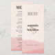 Placas De Menu De Casamento De Blush & Bloom Bold Script Minimalista. Inclua seus hóspedes com esses cartões de menu de casamento com Blush e Bloom de Script Negrito e Minimalista elegantes. Apresentando uma delicada pincelada e lavagem a água dourada rosa com textura sutil, estas placas adicionam um toque de amor e romance à sua recepção de casamento. Na frente, "Menu" é exibido em negrito, seguido pelos nomes do casal em negrito e pela data do casamento, cidade e estado. No verso, "Menu" é mostrado em uma tipografia ousada. De início a fundo, sobremesas e bebidas, o cardápio é belamente apresentado numa escrita ousada moderna. Personalize facilmente todo o texto sobre esta modelo, fazer-o como uma adição agradável às suas mesas recepções de casamento.