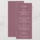 Adicione um toque de romance à sua recepção com o Elegante Menu de Casamento Rosa Migre e Elegante. Apresentando um fundo cor-de-rosa suave e poeirento com um texto branco elegante, este design refinado inclui o espaço no topo das iniciais do casal, seguido de seções claramente organizadas para aperitivos, saladas, entrentos e sobremesas. A parte inferior do menu proporciona um espaço personalizável para os nomes do casal e a data do casamento. Perfeito para casamentos modernos, românticos ou de vassoura, este menu combina simplicidade e sofisticação, fazer sua mesa de casamento sem esforço.