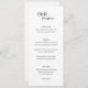 Menu de casamento moderno com um design simples com "NOSSO menu" em uma combinação de um roteiro elegante com uma fonte moderna sans serif. As costas têm sua foto, nomes e data de casamento.