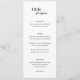 Cardápio de casamento moderno com design simples e "NOSSO cardápio" em uma combinação de uma fonte elegante e moderna sem serifa. A parte traseira tem sua foto, nomes e data do casamento.