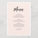 Menu Casamento moderno rosa. Mínimo simples de blush