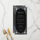 Um menu elegante com ar vintage, recomendado para um casamento com cores de casamento pretas e prateadas. O menu tem uma imagem de prata falsa vintage. O título "Menu" e as legendas são escritas em bonés. Todo texto pode ser personalizado e tem uma cor de cinza semelhante ao quadro. O fundo é preto. No verso, há o mesmo quadro de colheita. A safra, quadro de ornamentado, baseia-se numa antiga ligação francesa ao cobrir de livro, de Georges Mercier (1885-1939) - Madame de Maupin, por Theophile Gautier, edição de 1911, agora no dominio público.