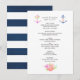Menu náutico de náutica da Trendy, com âncoras florais e faixas de marinho.