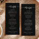 Deixe sua história de amor se desenrolar sobre o janto! Este cartão de cardápio de casamento apresenta um guião branco, escrito à mão, refletindo a alegria de sua celebração. Os itens de menu são apresentados dentro de um design preto e branco minimalista, garantindo que seus convidados possam navegar facilmente nos cursos planejados para sua noite especial.