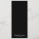 Este cardápio de casamento é simples, elegante e na moda. Ele apresenta a inscrição de script de rico em um plano de fundo preto. Subestimado e minimalista, este menu tem um estilo clássico de eterno que certamente adiciona um ar de sofisticação e estilo à sua recepção de casamento.