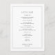 Elevem sua recepção com este cardápio personalizado de casamento preto e branco. Um design eterno para casais modernos, esta peça elegante adiciona um toque sofisticado à sua definição de mesa. Perfeito para mostrar seus pratos de estilo, é um belo exemplo de ideias de cardápio de casamento. Imprima seus convidados com cartões de cardápio e cartazes clássicos que amarram sua decoração sem problemas.
