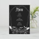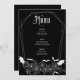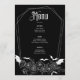Abraçar o encantamento com este cardápio de Casamento Gótico, perfeito para um casamento de Halloween. Esta design moderna e elegante combina uma estética boho-escura com uma vibração mórbida e assustadora, capturando a essência de uma celebração de outubro. Isoladamente adornado com teias de morcegos e aranhas, ao lado de delicados elementos florais, este menu de casamento mostra uma paleta de cores preto-e-branco impressionante. Ponha o tom para o seu dia especial com uma combinação única de assombração da beleza e da elegância do eterno.