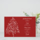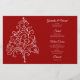 O festivo Menu Casamento no inverno da Árvore de Natal Vermelho pode ser personalizado com os detalhes da refeição que você servirá no almoço de chá de panela de dezembro, janto de recepção de casamentos ou brunch de casamento poste. Este elegante menu de casamento do inverno personalizado apresenta uma intrincada árvore de Natal branca com fundo vermelho.