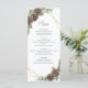 Estes elegantes cartões de cardápio de inverno apresentam um quadro geométrico dourado decorado com verde-aquarela, cones de pinho e galhos verdes invernais, acentuados com morangos de neve. Na parte de trás está uma textura verde de aquarela, com os nomes da noiva, noiva e data de casamento. Encontre o resto do pacote de convites de casamento e mais produtos correspondentes na coleção, ou envie-me mensagem através do Zazzle Chat se precisar de ajustes de design ou mais produtos correspondentes.