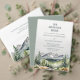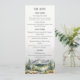 Esta bela aventura rústica começa no menu do casamento mostra montanhas pintadas a aquarela, paisagem florestal, perfeita para o outono, outono, inverno ou casamento de destino. Personalize os detalhes do dia do seu casamento.