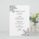 O menu Casamento no inverno festivo do Snowflake de Tons Prateados pode ser personalizado com os detalhes da refeição que servirá no almoço de chá de panela de dezembro, Janeiro ou fevereiro, janto de recepção de casamentos ou poste do brunch de casamento adicionando a salada ou o primeiro curso, o primeiro curso ou o segundo curso e a sobremesa ou o terceiro curso. Este elegante menu de casamento do inverno personalizado apresenta intrincados flocos de neve prateados adorando os cantos com um fundo branco.